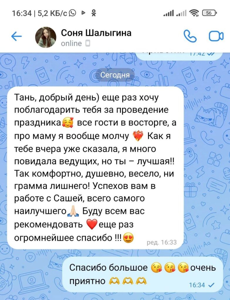 Профессионализм: Таня — опытный ведущий, который создаст непринужденную атмосферу и вовлечет всех гостей в праздник. DJ Саша обеспечит музыкальное сопровождение, которое заставит всех танцевать до утра!